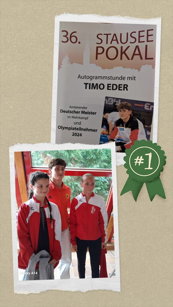 Ein zusätzlicher Höhepunkt an diesem Tag war die Autorammstunde mit dem Deutschen Meister Timo Eder, bei dem sich Lena Goldner und Femi Scheyerle (Bild v.l.) gleich mal ein Autogramm sicherten