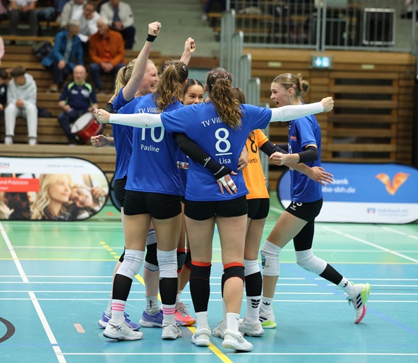 Mit großem Kampfgeist konnte das Team die ersten beiden Sätze jeweils knapp mit großer Nervenstärke für sich entscheiden. Und auch der Verlust von Satz drei brachte die Villingerinnen nicht ins Straucheln. Konzentriert und mit starken Aufschlägen kamen die Villingerinnen zurück und entschieden den vierten und damit entscheidenden Satz zum Matchgewinn für sich.