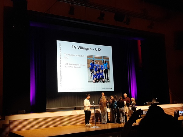 Während Adrian Engstler bei der Sportlerwahl dieses Mal leer ausging, konnten sich die U12 Volleyballmädchen mit den Trainerinnen Emma Alvarez, Grit Müller und Annette Russo am Freiteg über die Ehrung für den Gewinn der Südbadischen Meisterschaft freuen.